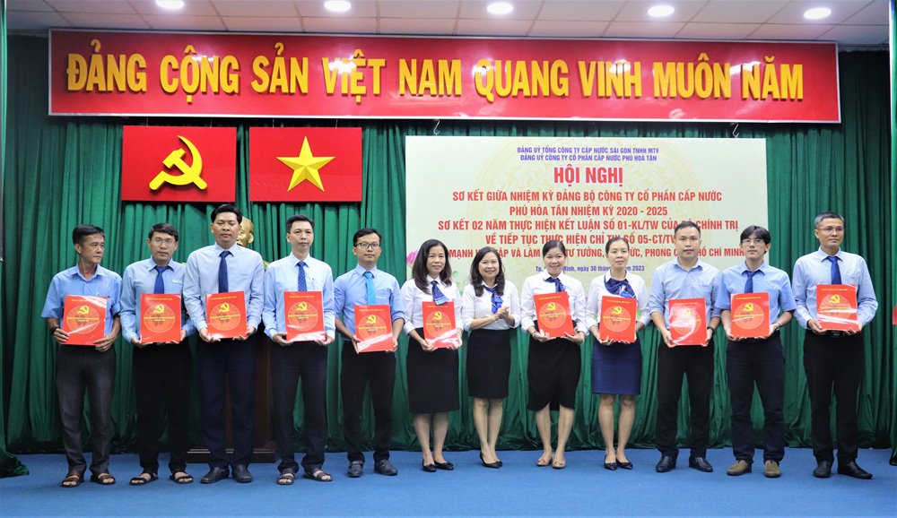 Hội nghị giữa nhiệm kỳ thực hiện Nghị quyết Đại hội Đảng bộ cơ sở Công ty Cổ phần Cấp nước Phú Hòa Tân lần thứ IV, nhiệm kỳ 2020-2025 và sơ kết 2 năm thực hiện Kết luận 01/KL-TW và biểu dương tập thể cá nhân tiêu biểu trong học tập và làm theo tư tưởng, đạo đức, phong cách Hồ Chí Minh giai đoạn 2022-2023.