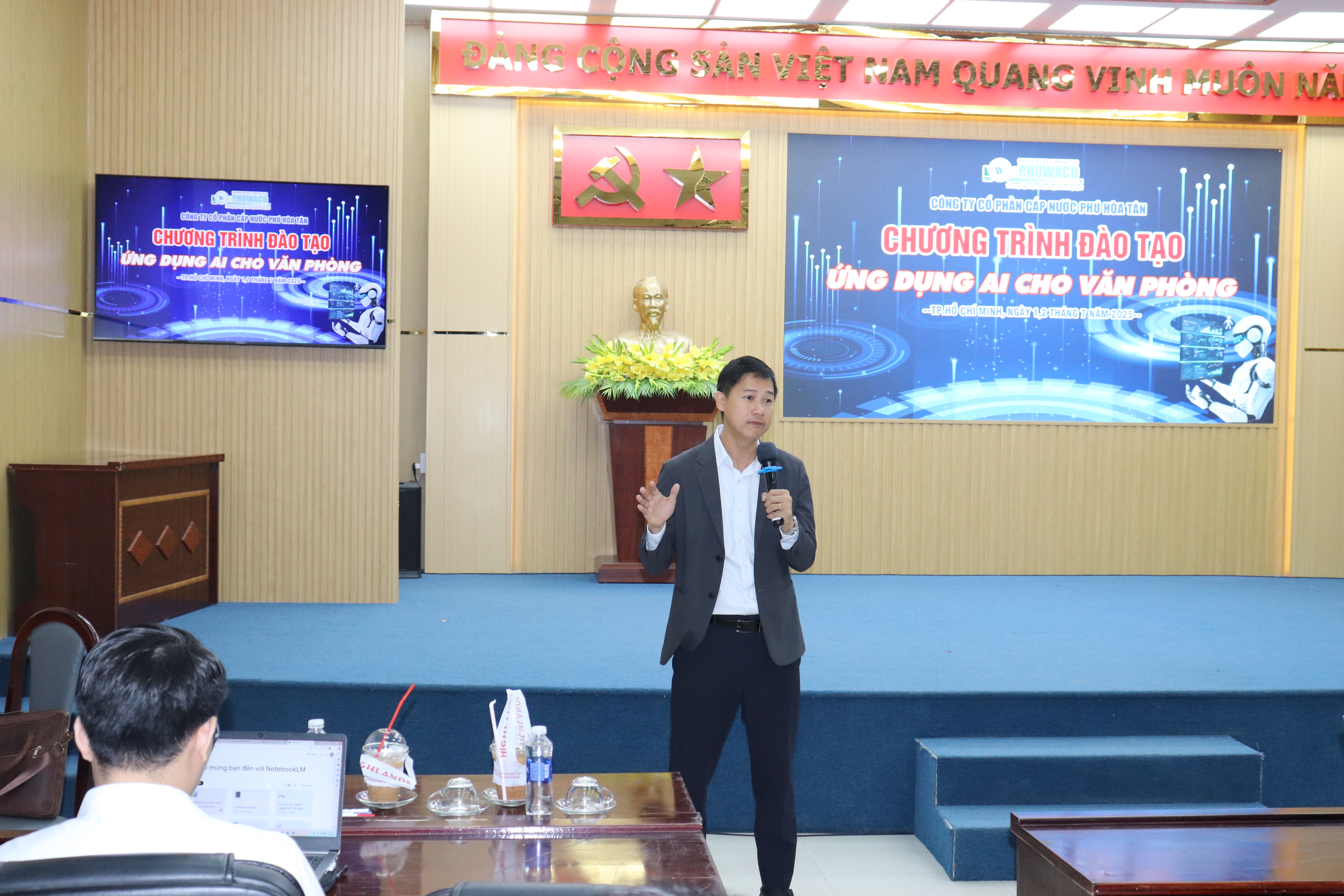 Khóa đào tạo “Ứng dụng AI trong văn phòng” là bước đi chiến lược trong lộ trình chuyển đổi số của Công ty CP Cấp nước Phú Hòa Tân, nhằm tích hợp trí tuệ nhân tạo vào mọi mặt hoạt động. Thông qua việc trang bị kỹ năng và tư duy ứng dụng AI cho nhân viên, công ty đã nâng cao hiệu quả vận hành, thúc đẩy đổi mới sáng tạo, xây dựng môi trường làm việc số hóa và cải thiện chất lượng phục vụ khách hàng.