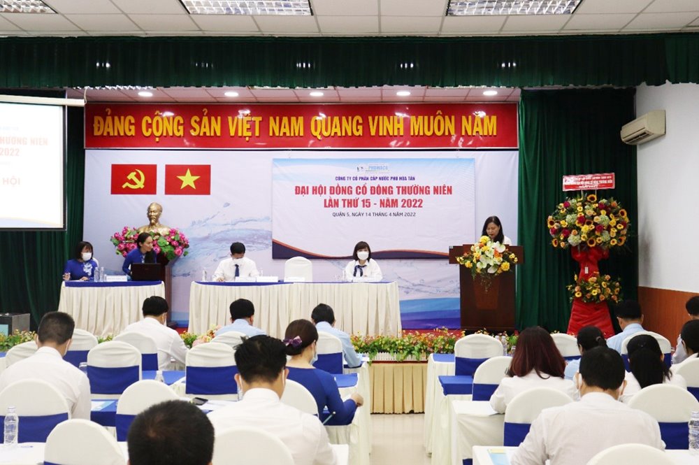 Đại hội có sự tham dự từ Tổng Công ty Cấp nước Sài Gòn – TNHH MTV có Ông Lý Bửu Nghĩa – Phó Bí thư Thường trực Đảng ủy; Ông Nguyễn Thanh Sử - Phó Tổng Giám đốc; Ông Lê Hữu Quang - Thành viên Chuyên trách Hội đồng thành viên; Ông Võ Duy Thuận – Thành viên Hội đồng thành viên. Đại diện Ủy Ban Chứng Khoán, Hội đồng Quản trị, Ban Kiểm soát, Ban điều hành cùng Quý cổ đông của Công ty Cổ phần Cấp nước Phú Hòa Tân.