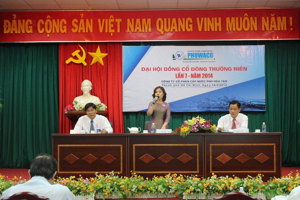 Tại đại hội, Công ty đã báo cáo kết quả sản xuất kinh doanh năm 2013 và kế hoạch sản xuất kinh doanh năm 2014. Năm 2013, công ty đạt tổng doanh thu 291,546 tỷ đồng, lợi nhuận sau thuế 17,540 tỷ đồng, tổng chi phí 269,064 tỷ đồng. Trong đó, về kinh doanh nước sạch Phuwaco đã hoàn thành vượt kế hoạch các chỉ tiêu về doanh thu và sản lượng nước tiêu thụ trong năm 2013. Tỷ lệ hộ đân được cấp nước sạch đạt 99.997%.