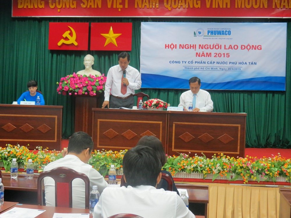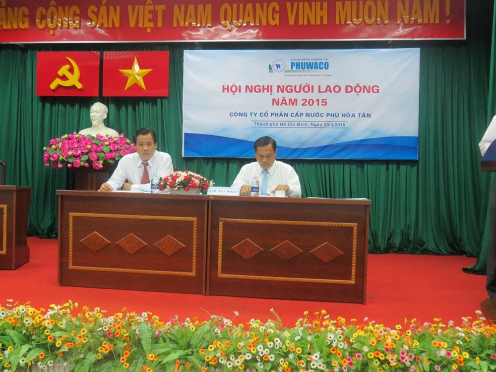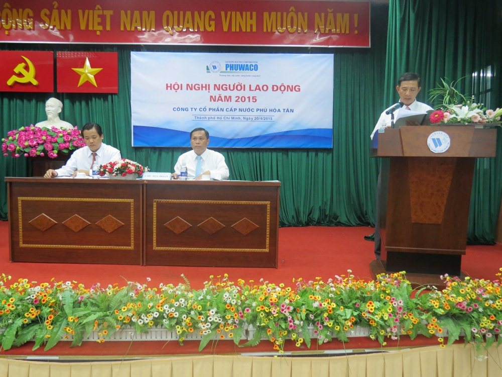 Vừa qua ngày 20/4/2015, Ban Giám đốc và Công đoàn Công ty Cổ phần Cấp nước Phú Hòa Tân phối hợp tổ chức Hội nghị Người Lao động Công ty Cổ phần Cấp nước Phú Hòa Tân năm 2015.