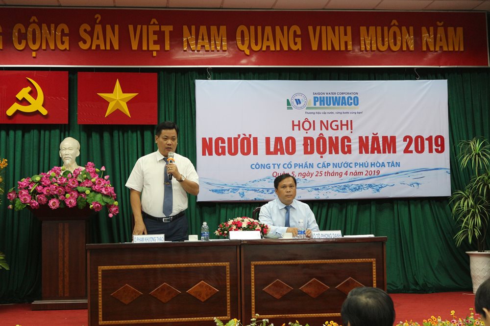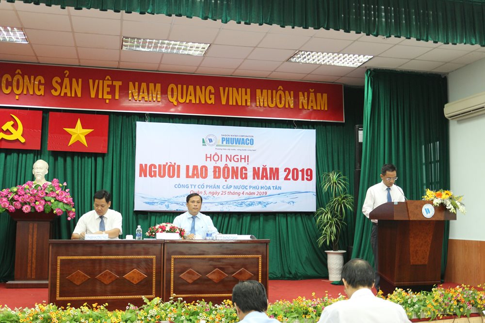 Ngày 25/04/2019, Công ty Cổ phần Cấp nước Phú Hòa Tân đã tổ chức Hội nghị Người lao động năm 2019. Đến dự Hội nghị có đồng chí Dương Hồng Đệ - Phó Bí thư Thường trực Đảng ủy Tổng Công ty, ông Tô Trung Dũng – Chủ tịch Công đoàn Tổng Công ty, Đồng chí Lý Bửu Nghĩa, Trưởng ban Tổ chức Đảng ủy Tổng Công ty; cùng dự có Ban lãnh đạo và toàn thể CB.CNV trong công ty.