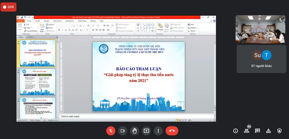 Các đại biểu tham dự Hội nghị lắng nghe báo cáo chuyên đề “Các giải pháp nhằm tăng sản lượng nước, tỷ lệ thực thu và giá bán bình quân trong giai đoạn bình thường mới” do Công ty CPCN Phú Hòa Tân thực hiện và chuyên đề “Các giải pháp tăng tỷ lệ thực thu tiền nước” do Công ty CPCN Thủ Đức thực hiện. Từ đầu năm 2021 dịch bệnh Covid-19 đã ảnh hưởng sản lượng tiêu thụ, doanh thu và giá bán bình quân. Các đơn vị đã trao đổi thảo luận thông tin, chia sẻ kinh nghiệm thực tiễn, giải pháp trong kế hoạch sản xuất kinh doanh trong hoạt động cấp nước giai đoạn bình thường mới.