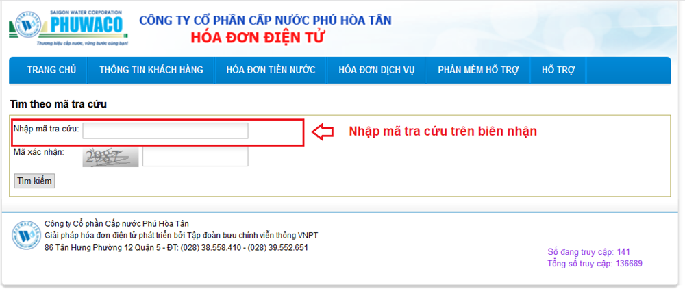 Truy cập website http://hoadon.phuhoatan.com.vn