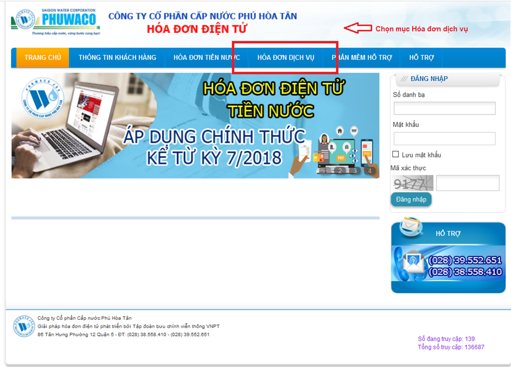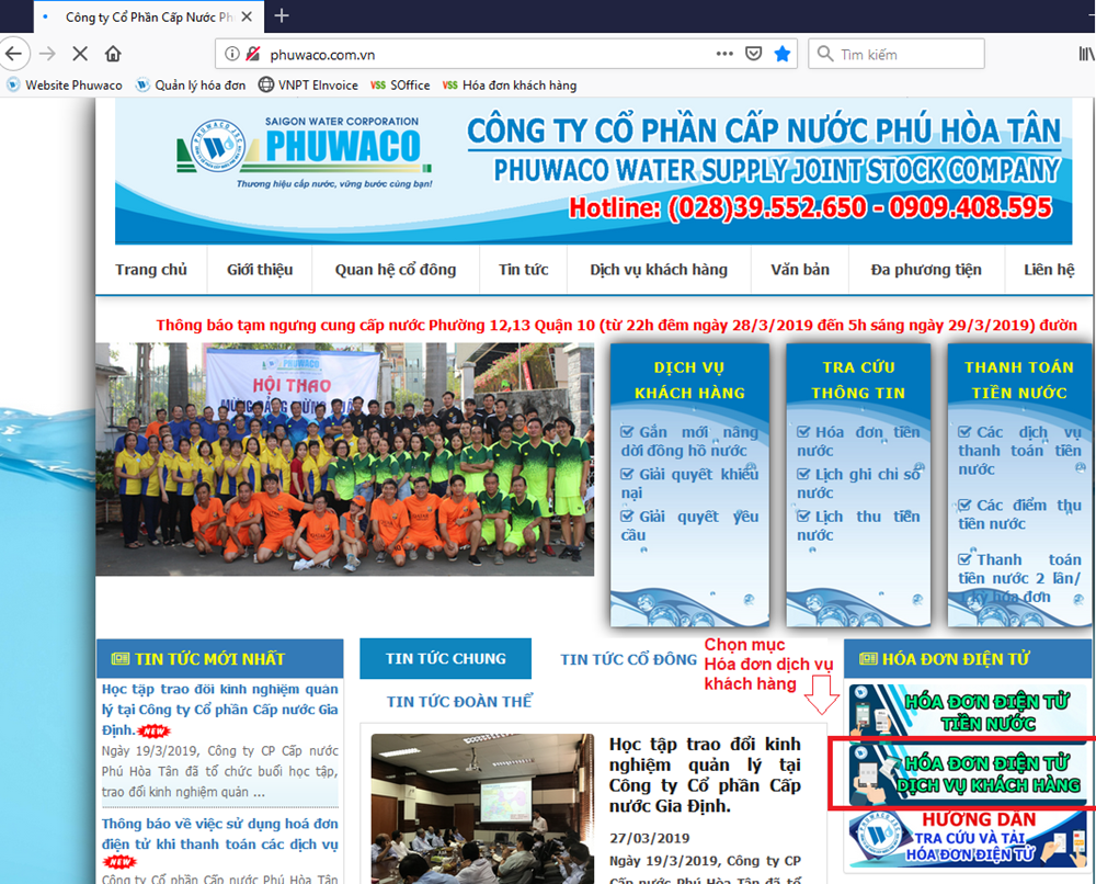 Truy cập Website http://phuwaco.com.vn và chọn mục