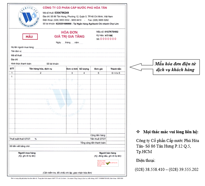 Từ ngày 1/4/2019 Quý khách hàng khi thanh toán các dịch vụ: Gắn mới, nâng dời. gắn lại ĐHN, kiểm định, bấm chì, đóng mở nước, Cung cấp họa đồ…. và các dịch vụ khác sẽ nhận hóa đơn điện tử không nhận hóa đơn giấy như trước đây.