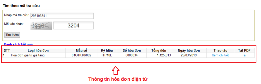 Sau khi nhập thông tin đầy đủ, nhấn tìm kiếm để xem và tải hóa đơn điện tử