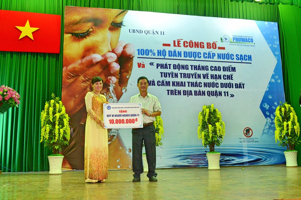 Ngày 20/5, Lễ công bố 100% hộ dân được cấp nước sạch đã được tổ chức tại UBND Quận 11 Tp.HCM. Tới dự lễ công bố có Ông Phạm Hiếu Nghĩa - Phó Trưởng ban pháp chế HĐND TP , Ông Dương Công Khanh – Thành uỷ viên, Bí thư, Chủ tịch UBND Quận 11; Ông Bạch Vũ Hải – Phó TGĐ Tổng Công ty Cấp nước Sài gòn; lãnh đạo Công ty Cổ phần Cấp nước Phú Hòa Tân (Phuwaco) và đại diện các đơn vị trên địa bàn quận11.