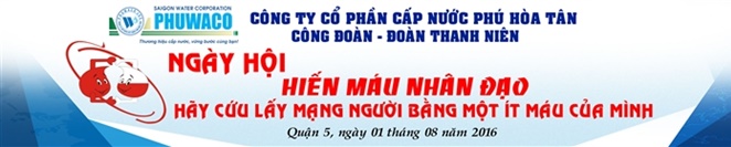 Bắt đầu cho một ngày mới 01/8/2016, Công đoàn, Đoàn thanh niên Công ty cổ phần Cấp nước Phú Hòa Tân đã phối hợp Hội chữ thập đỏ Phường 12 Quận 5 tổ chức ngày hội hiến máu nhân đạo với ý nghĩa “Một giọt máu cho đi, một cuộc đời ở lại”. Với sự tham gia tích cực của đông đảo cán bộ công nhân viên,
