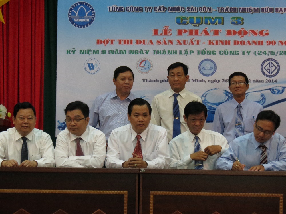 Tại lễ phát động Giám đốc 5 đơn vị ký vào sổ thi đua dưới sự chứng kiến của Ban lãnh đạo Tổng Công ty Cấp nước Sài Gòn: Ông Trần Đình Phú - Tổng Giám Đốc, Ông Nguyễn Văn Dụ - Phó Tổng Giám Đốc và Ông Trần Văn Thành – Chủ tịch Công Đoàn Tổng Công ty.