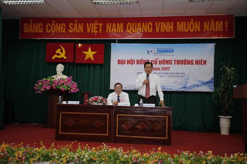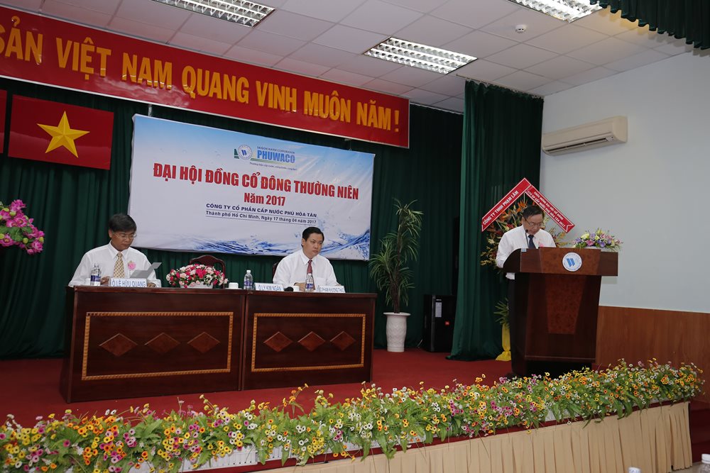 Sáng ngày 17/4/2017, Công ty Cổ phần Cấp nước Phú Hòa Tân đã tổ chức Đại hội đồng Cổ đông thường niên năm 2017. Tham dự đại hội có các cổ đông đại diện cho 83,25% số cổ phần có quyền biểu quyết.