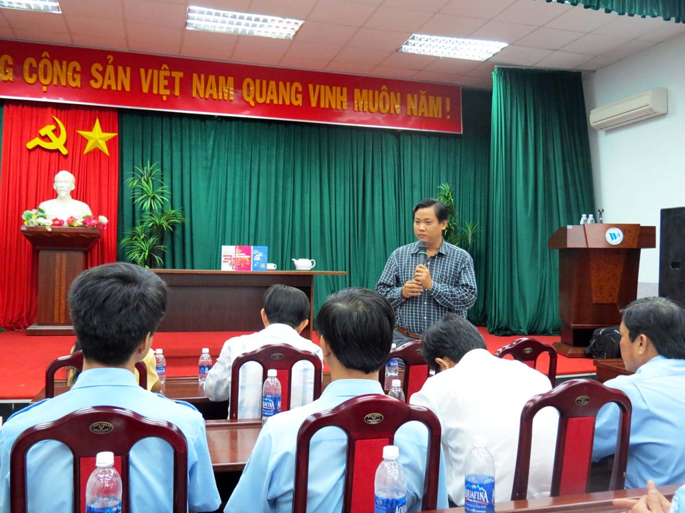 Thầy giáo Nguyễn Thành Nhân không chỉ đơn giản là truyền đạt những kiến thức, mà lồng ghép trong bài giảng những tình huống cụ thể, những bài học thực tiễn trong công việc hàng ngày, qua đó học viên cùng thảo luận để đưa ra các hướng giải quyết sao cho vừa đáp ứng được mục tiêu: phục vụ khách hàng tốt nhất và nâng cao chất lượng dịch vụ của Công ty.