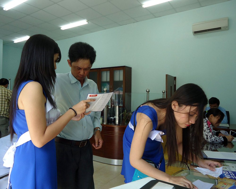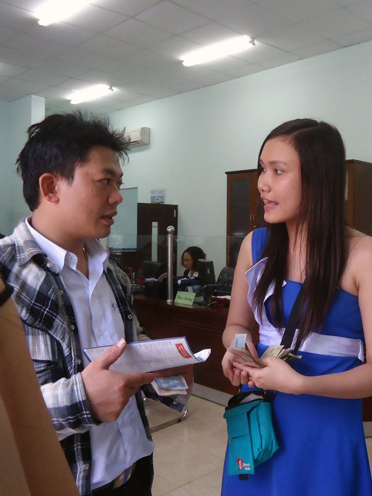 Các nhân viên Payoo hướng dẫn và giải đáp thắc mắc của khách hàng tại Phòng tiếp khách hàng Công ty Cổ phần Cấp nước Phú Hòa Tân