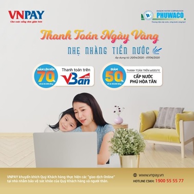 Theo đó, từ ngày 20/04 đến 07/06/2020, Công ty Cổ phần Cấp nước Phú Hòa Tân (PHUWACO) hợp tác cùng Công ty Cổ phần Giải pháp Thanh toán Việt Nam (VNPAY) mang đến hàng ngàn ưu đãi lên đến 70% (tối đa 50.000 đồng/hóa đơn) khi thanh toán hóa đơn tiền nước trực tuyến cho khách hàng tại khu vực quận 10, phường Phú Trung quận 11, quận Tân Phú. Hãy nhanh tay thanh toán theo hướng dẫn để nhận ngay ưu đãi cực đỉnh này nhé.