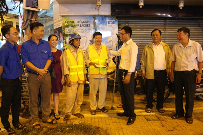 Lãnh đạo Công ty, đại diện Công đoàn, Đoàn thanh niên trao tặng những phần quà động viên cho công nhân làm đêm