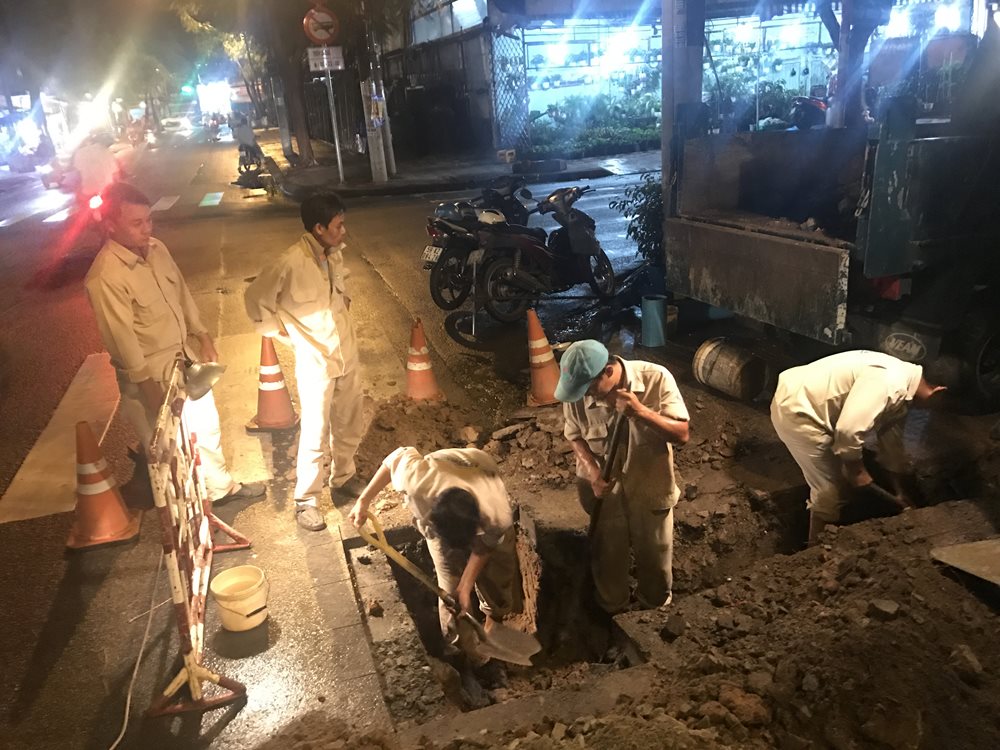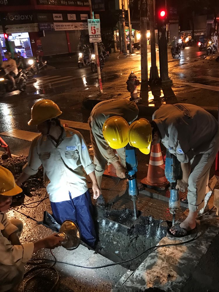 Khi những con đường thành phố ngập trong ánh đèn cao áp và thưa bóng người, giờ làm việc của những người công nhân thi công tu bổ mới bắt đầu. Hằng đêm, khi thành phố đã yên tiếng động, người công nhân khoác máy đục, máy cắt, để đào thi công lắp đặt, sữa chữa các đường ống nước nằm sâu trong lòng đất.