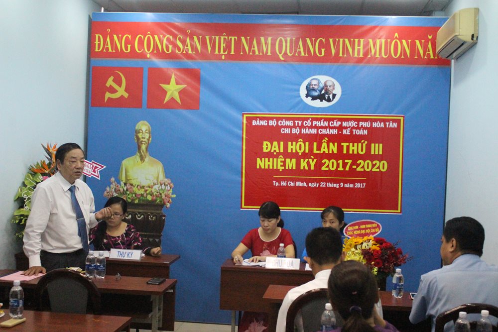 Ngày 22/8/2017 Chi bộ Hành chánh Kế toán Công ty Cổ phần Cấp nước Phú Hòa Tân đã tổ chức thành công Đại hội Chi bộ nhiệm kỳ 2017 - 2020.