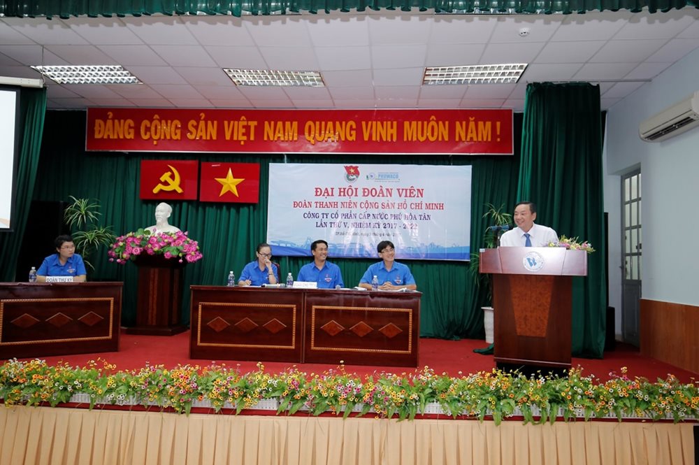 Ngày 03/4/2017, Đại hội Đoàn viên Đoàn TNCS Hồ Chí Minh Công ty Cổ phần Cấp nước Phú Hòa Tân lần thứ V nhiệm kỳ 2017-2022 đã diễn ra trong không khí náo nức và trang trọng. Đến tham dự Đại hội có đồng chí Nguyễn Thị Kiều Nguyệt – Bí thư Đoàn thanh niên Tổng Công ty Cấp nước Sài Gòn, đồng chí Vương Vũ, Phó Bí thư thường trực Đoàn thanh niên Tổng Công ty Cấp nước Sài Gòn, Ban Chấp hành Đảng bộ, các đồng chí Bí thư Chi bộ cùng 67 đoàn viên của 2 Chi đoàn.