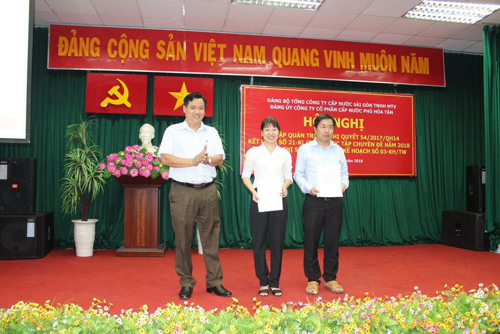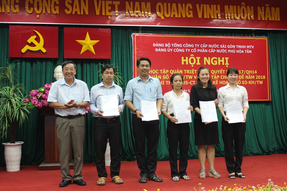 Ngày 10/5/2018, Đảng ủy Công ty Cổ phần Cấp nước Phú Hòa Tân đã tổ chức Hội nghị học tập quán triệt Nghị quyết 54/2017/QH14 của Quốc hội về thí điểm cơ chế, chính sách đặc thù phát triển TP.HCM, kết luận số 21-KL/TW và học tập chuyên đề năm 2018 theo chỉ thị số 05-CT/TW, và kế hoạch số 03-KH/TW cho toàn thể Đảng viên, Cán bộ chủ chốt, BCH Đoàn thanh niên của Công ty.