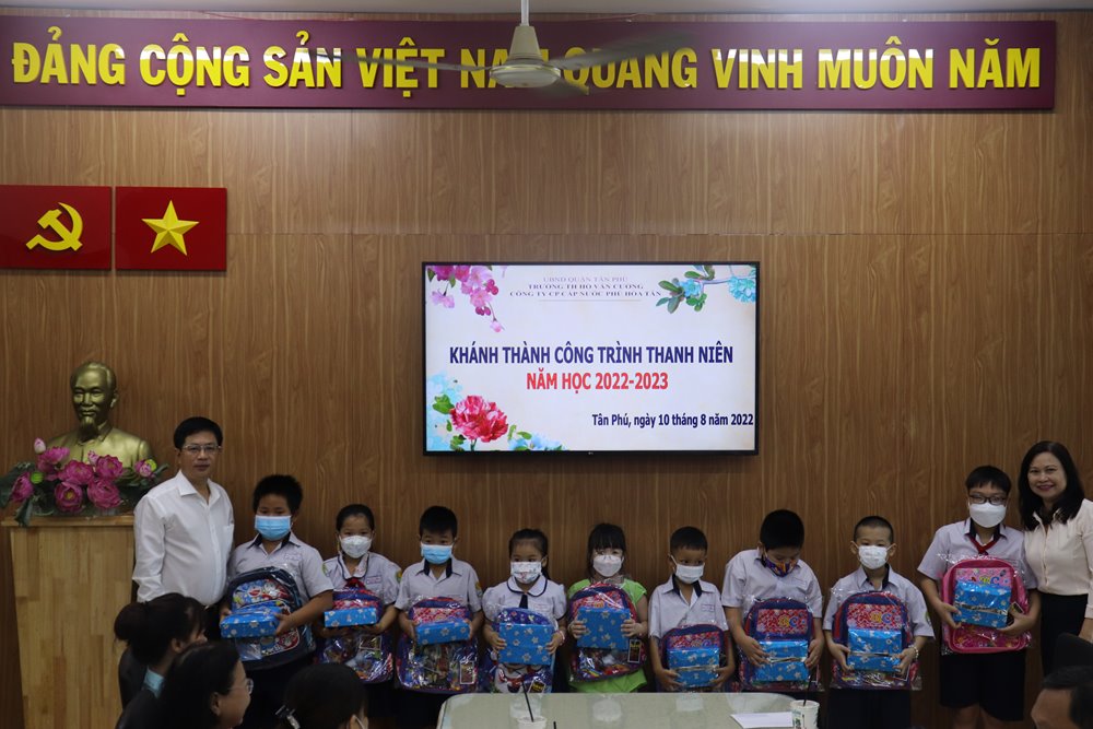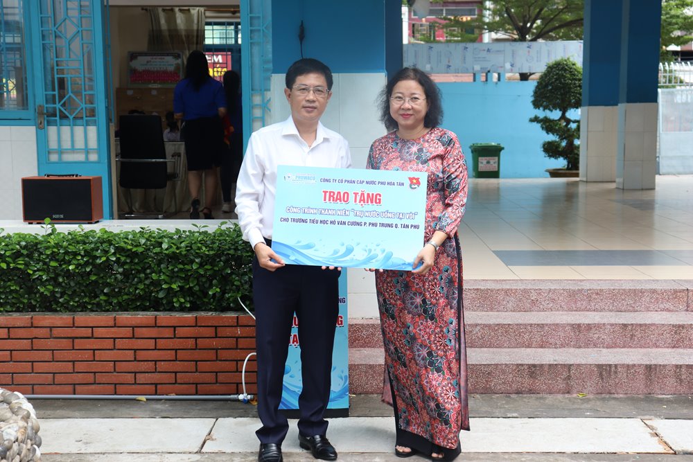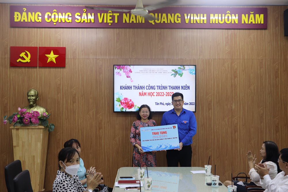Ngày 10/8/2022, tại Trường tiểu học Hồ Văn Cường, phường Phú Trung quận Tân Phú, Đoàn Thanh niên Công ty Cổ phần Cấp nước Phú Hòa Tân tổ chức lễ khánh thành trụ nước uống tại vòi và trao tặng 02 bộ máy tính, tặng quà cho học sinh có hoàn cảnh khó khăn tại địa bàn phường.