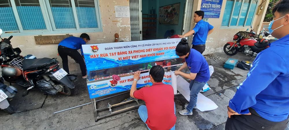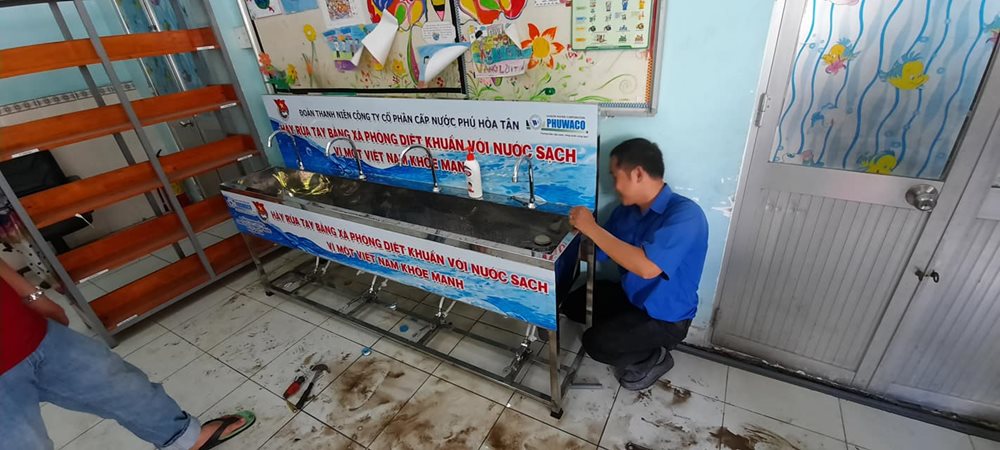 Tiếp tục các hoạt động trong tháng kỳ nghỉ hồng năm 2020, Sáng 19/7/2020 Đoàn Thanh niên công ty Cổ phần Cấp nước Phú Hòa đã ra quân thực hiện công trình thanh niên lắp đặt bồn rửa tay bằng nước sạch với khẩu hiệu "Hãy rửa tay với xà phòng bằng nước sạch - Vì một Việt Nam khỏe mạnh" tại trường Tiểu học Quyết Thắng Phường 11 Quận 11. Đến tham dự buổi lễ khánh thành bồn nước rửa tay có sự hiện diện của ông Tô Phong Danh Chủ tịch Công đoàn Công ty.