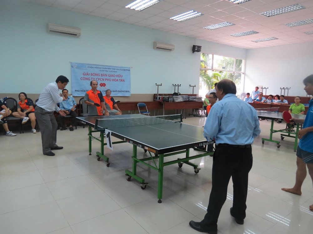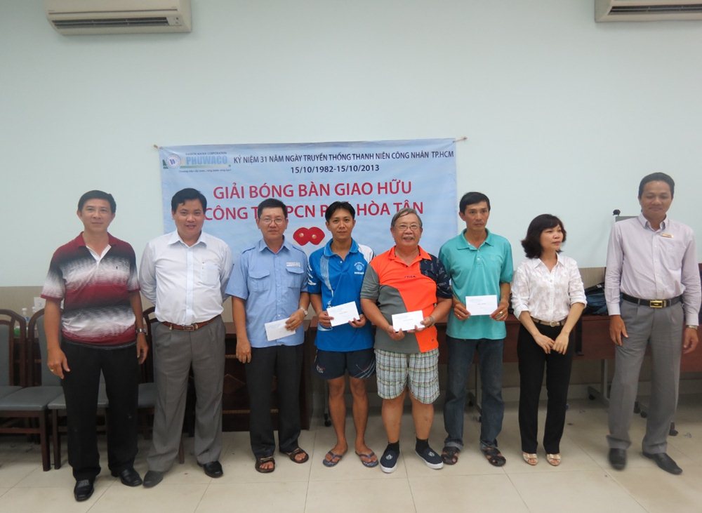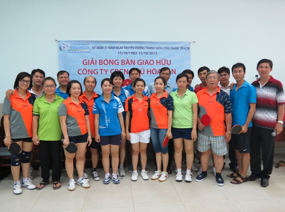 Nhân kỷ niệm 31 năm ngày truyền thống thanh niên công nhân 15/10, nhằm thắt chặt tình đoàn kết, hữu nghị giữa các đơn vị, Công đoàn Công ty Cổ phần Cấp nước Phú Hòa Tân đã tổ chức “Giải bóng bàn giao hữu Phuwaco” với sự tham gia của các đơn vị: Khối Phòng Ban Tổng công ty Cấp nước Sài Gòn (Sawaco), Công ty TNHH MVT Cấp Nước Tân Hòa, CTCP Cấp nước Chợ Lớn, CTCP Cấp nước Phú Hòa Tân (Phuwaco). Các đơn vị tham gia thi đấu theo thể thức đồng đội gồm 5 nội dung: đơn nam, đơn nữ, đôi nam nữ, đôi nam, đôi nữ.