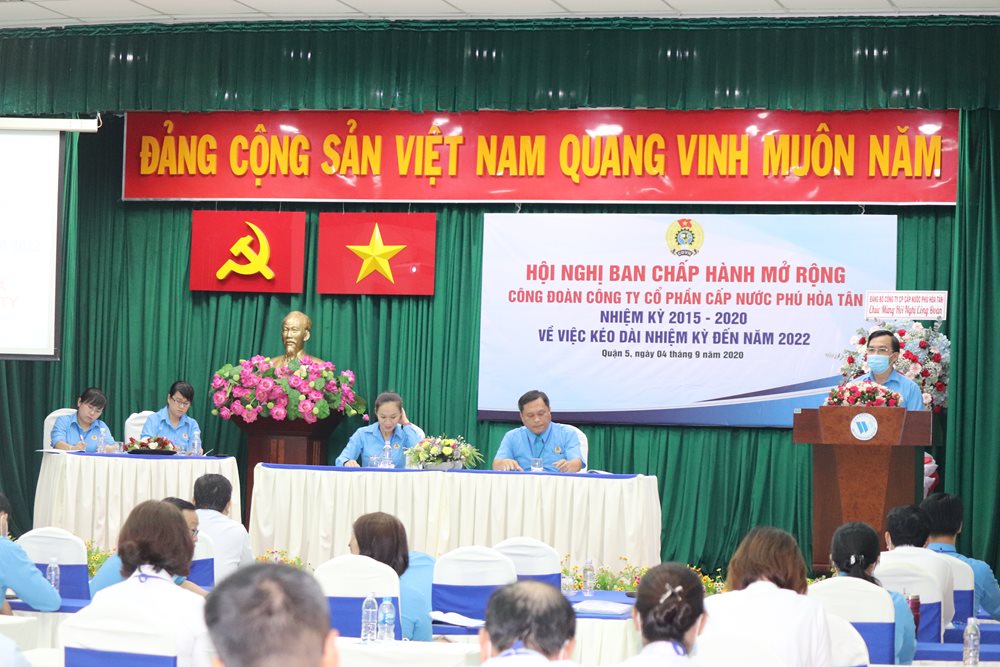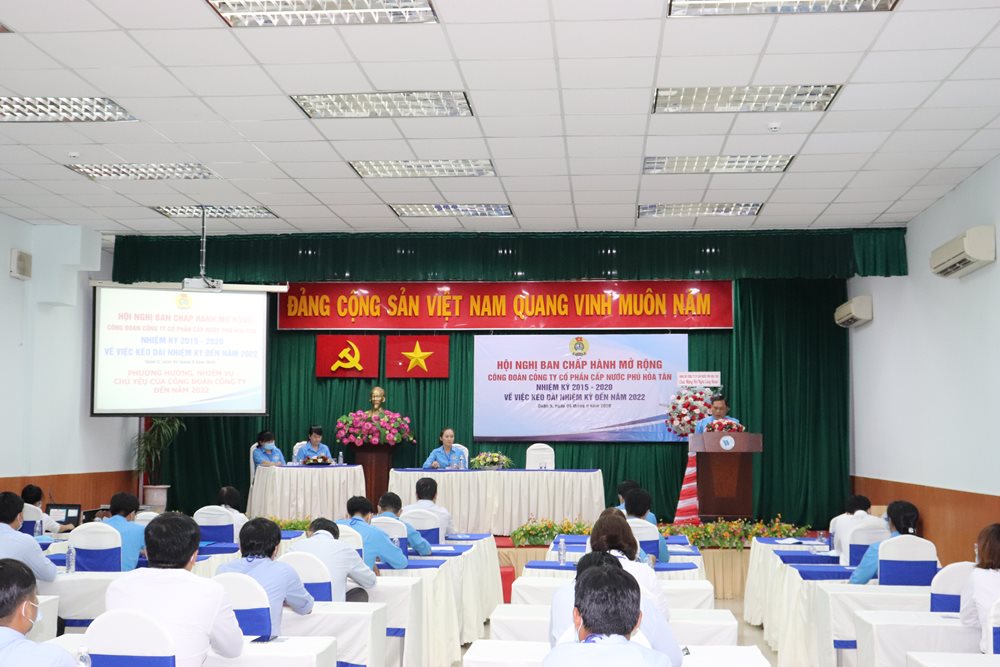 Hội nghị tiếp thu ý kiến chỉ đạo của đồng chí Phan Minh Chánh và đồng chí Lê Thị Thanh Tâm về đánh giá kết quả hoạt động Công đoàn cơ sở giai đoạn 2015-2020 và các chỉ tiêu bổ sung phương hướng đến năm 2022. Công đoàn cơ sở Công ty Cổ phần Cấp nước Phú Hòa Tân, nhiệm kỳ 2015-2020 kéo dài đến năm 2022 tiếp tục xây dựng tổ chức Công đoàn vững mạnh, nâng cao năng lực, vai trò đại diện, bảo vệ quyền, lợi ích của công nhân viên, người lao động, nêu cao tinh thần trách nhiệm, đoàn kết năng động, sáng tạo góp phần thực hiện thắng lợi các chỉ tiêu, nhiệm vụ sản xuất kinh doanh và Nghị quyết Đại hội Đảng bộ Công ty nhiệm kỳ 2020-2025.