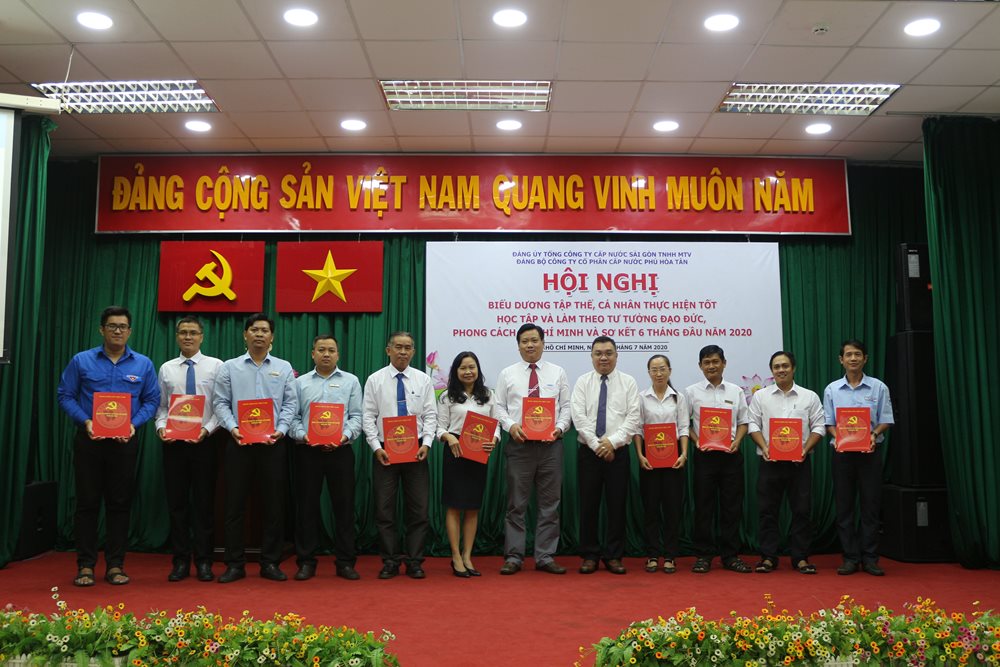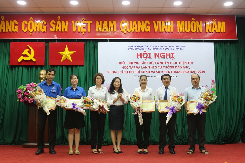 Thực hiện tốt trong việc học tập và làm theo tấm gương đạo đức Hồ Chí Minh năm 2020, BCH Đảng ủy Tổng Công ty Cấp nước Sài Gòn công nhận, khen thưởng cho cho 02 tập thể và 04 cá nhân. Đảng bộ Công ty Cổ phần Cấp nước Phú Hòa Tân đã tổ chức tuyên dương cho 06 tập thể và 11 cá nhân đã có thành tích tiêu biểu thực hiện tốt việc học tập và làm theo tư tưởng, đạo đức, phong cách hồ Chí Minh.