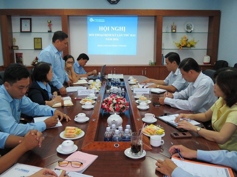 Ngày 04/07/2014, Công ty CPCN Phú Hòa Tân đã tổ chức Hội nghị đối thoại giữa Lãnh đạo Công ty và người lao động. Đây là một hoạt động thường niên của đơn vị nhằm kịp thời nắm bắt tâm tư, nguyện vọng của người lao động cũng như kịp thời điều chỉnh những tồn tại vướng mắc trong công tác điều hành quản lý doanh nghiệp.