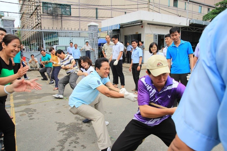 Ban lãnh đạo Công ty tham gia thi đấu môn kéo co