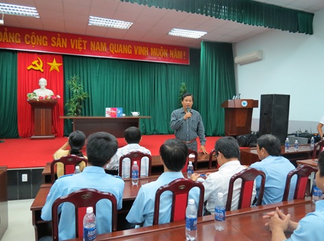 Đồng chí Phạm Khương Thảo – Giám đốc Công ty Cổ phần Cấp nước Phú Hòa Tân báo cáo